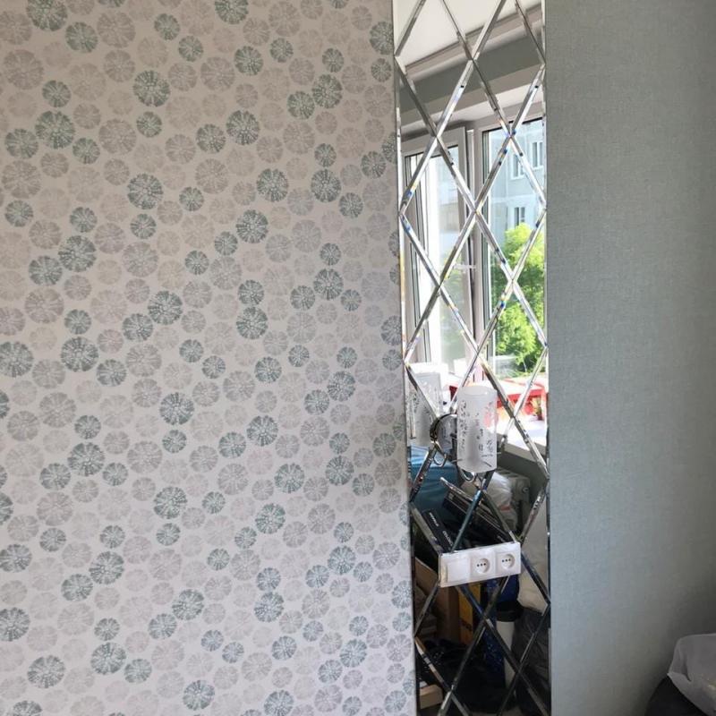 Использована серебристая квадратная зеркальная плитка размером 18х18.